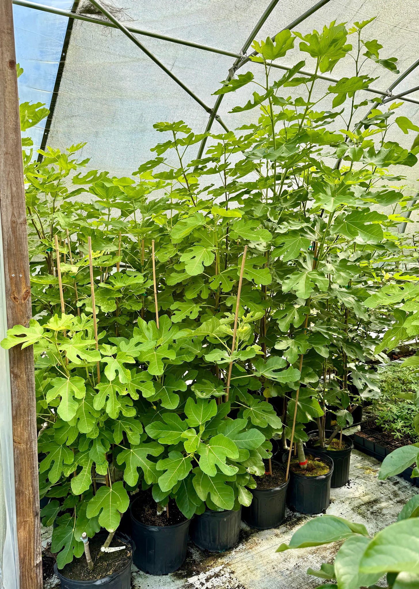 I’m currently growing over 100 varieties of figs after culling around 40 last year due to them having similar flavors or low productivity. My culled varieties aren’t disposed of but rather repurposed as mature rootstock to graft new varieties onto them the following spring. I don’t have an exact count on total potted fig trees other than that I’m running out of space in the 30x72’ high tunnel. Once winter arrives and all trees are dormant, I’ll review my season notes and figure out which varieties didn’t make the cut to make space for new arrivals.