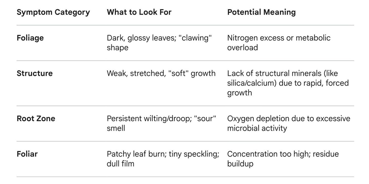 Context is everything, amino acids work best when the plant's foundation (roots, water, light, oxygen) is already solid. They are a tool to maximize efficiency, not a remedy for fundamental growing errors. Amino acids stimulate metabolism, so if there is too much of a nutrient or too little, that can show up when excessive amounts are applied.